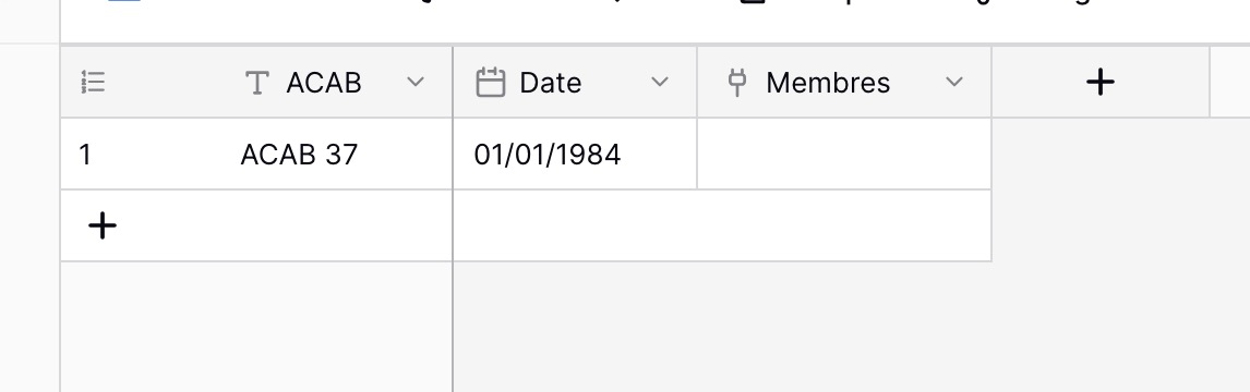 - il y a aussi une collone 🔌"ACAB" dans la table Membres qui lie vers la table ACAB.